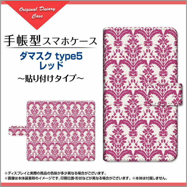 moto g7 plusモト ジーセブン プラスMOTOROLA モトローラ手帳型 貼り付けタイプ スマホカバー ダイアリー型 ブック型ダマスク type2 レッド