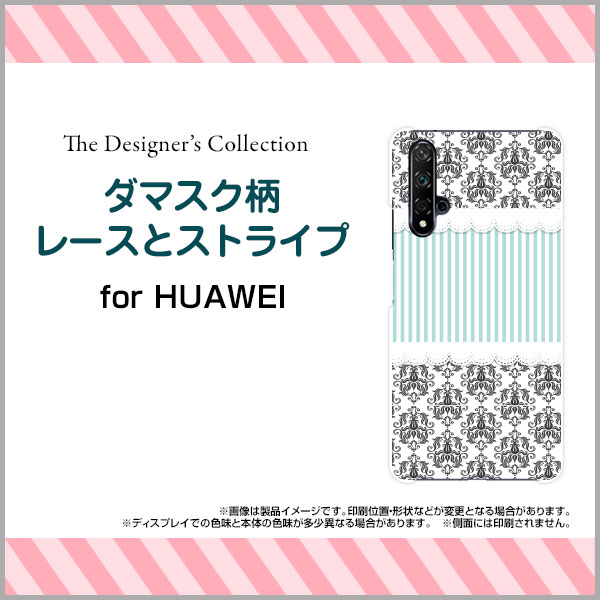 HUAWEI nova 5T Rakuten UN-LIMIT対応ファーウェイ ノヴァ 5TRakuten Mobile 楽天モバイルオリジナル デザインスマホ カバー ケース ハード TPU ソフト ケースダマスク柄レースとストライプ