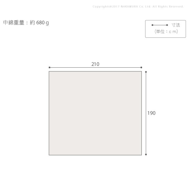 【カラーバリエーション】 ブラウン・グレー 【仕様】 表地:ポリエステル53%・綿39%・レーヨン8%裏地:ポリエステル100%(シープボア)中綿:ポリエステル100% 【サイズ】 210x190cm重量:約2.5kg中綿:約680g 株式会社ナカムラ(21101882)